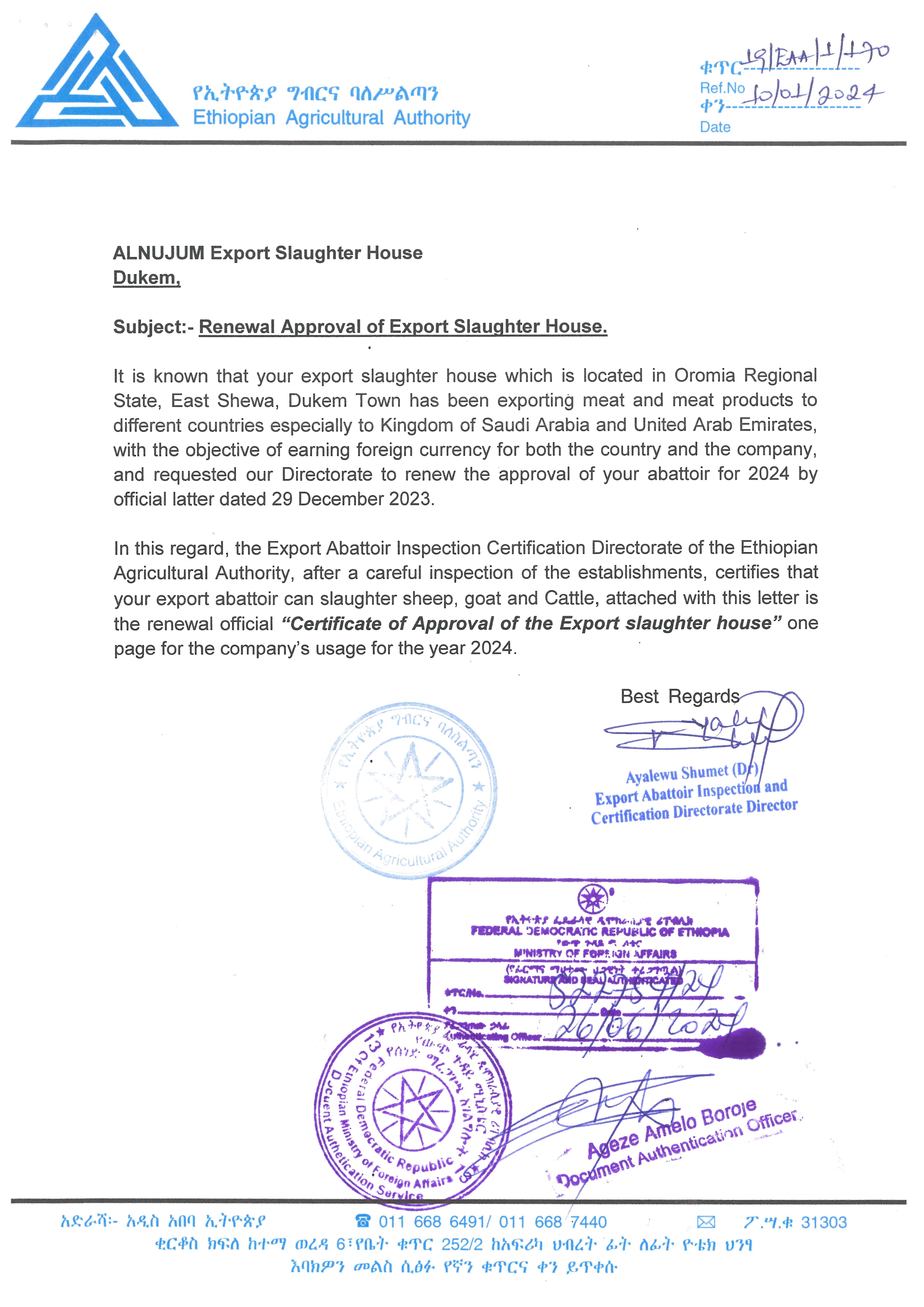 This certificate are Renewal Approval of Export Slaughterhouse House